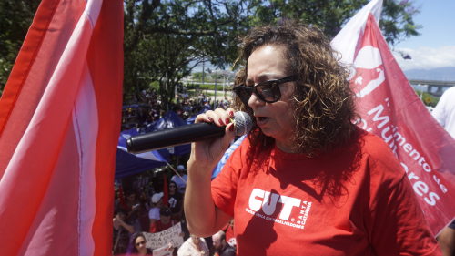 Já em Chapecó, a manifestação ocorreu na Praça Coronel Bertaso, com a presença da Secretária de Mobilização e Relação com Movimentos Sociais da CUT-SC, Zigue Timm, representando a Central.