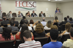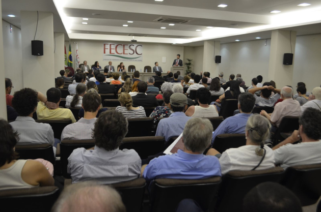 Juristas, jornalistas, artistas e tantos outros profissionais se reuniram, na tarde de ontem, no auditório da Federação dos Trabalhadores no Comércio no Estado de Santa Catarina - Fecesc, em Florianópolis, para discutir o momento de instabilidade no encontro “Juristas pela legalidade, democracia e justiça.” Os juristas se posicionaram contrários ao pedido de impeachment da presidenta Dilma Rousseff feito pela OAB por acreditarem na inexistência de crime de responsabilidade. Entre os encaminhamentos do encontro estão um ato de protesto na sede do órgão, em Florianópolis, com a entrega do documento “Juristas Contra o Golpe” e à adesão às manifestações de hoje, 31 de março, com concentração na Câmara Municipal, às 16h.